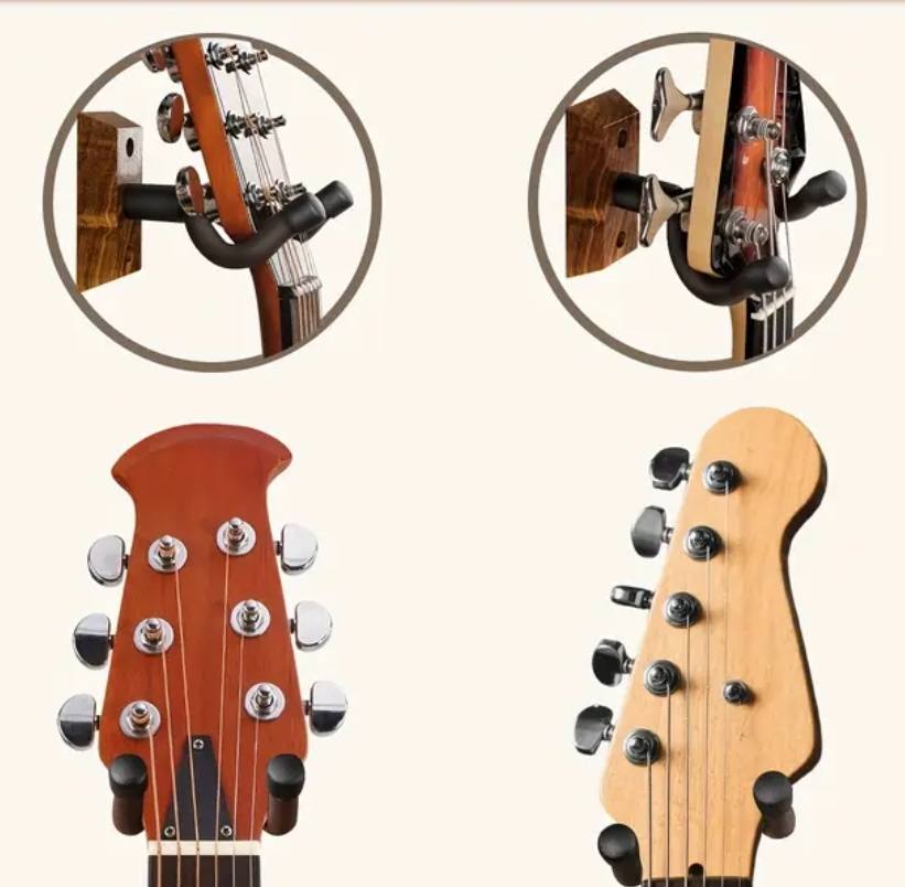 Hoogwaardige Gitaarhouder voor Wandmontage – Hout & Metaal – 13 x 9,5 x 4 cm