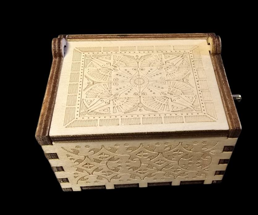 Deze prachtig handgemaakte houten muziekdoos brengt een vleugje nostalgie in elke ruimte. Zodra je aan de hendel draait, speelt de box het tijdloze nummer “Imagine” – helder, warm en volledig mechanisch.