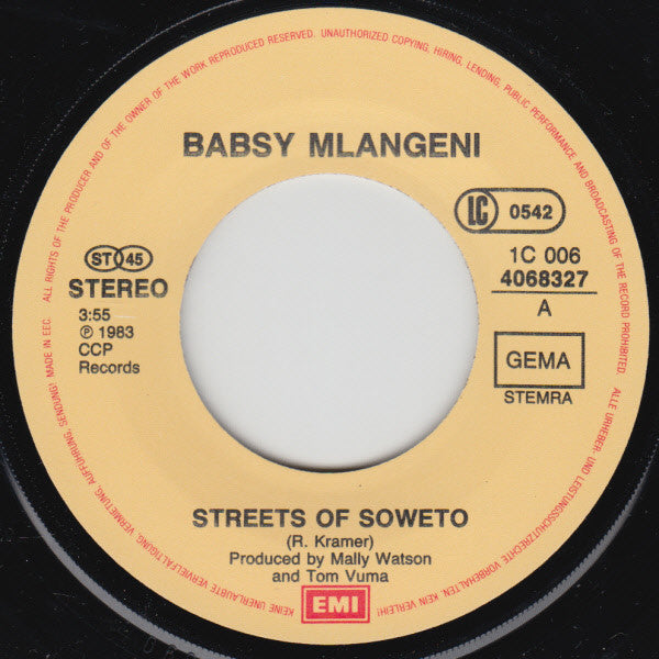 Babsy Mlangeni - Streets Of Soweto (7", Single) (Near Mint (NM or M-))
