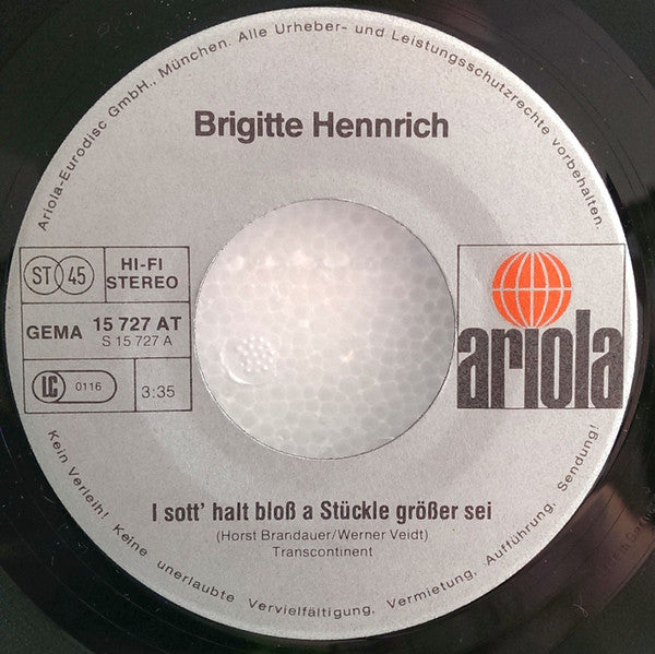 Brigitte Hennrich - I Sott' Halt Bloß A Stückle Größer Sei / No Net Hudle (7", Single) (Mint (M))
