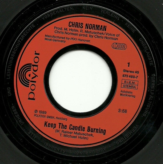 Chris Norman - Keep The Candle Burning (7", Single) (Near Mint (NM or M-))
