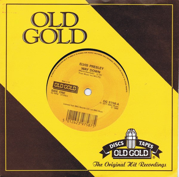 Way Down is credited as being written by Martin / Kennedy on the label, this is incorrect as the actual writer is Layng Martine Jr. Publishers: Side A: Prize Music Inc. Side B :Screen Gems - EMI Music Ltd.