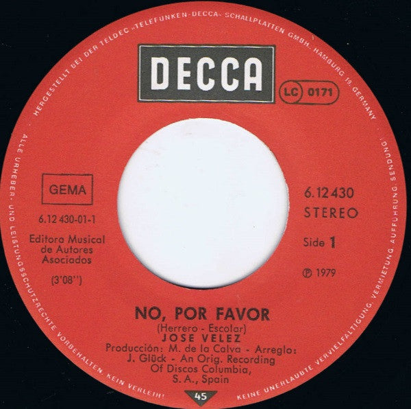José Vélez - No, Por Favor (7", Single) (Near Mint (NM or M-))