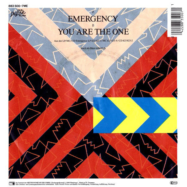 P. 1984 De-Lite Recorded Sound Corp., New York P. 1985 Made in Germany (labels) Made in W.-Germany (sleeve) Aus der LP/MC/CD Emergency LP 823 823-1 / MC 823 823-4 / CD 823 823-2 Auch als Maxi erhältlich