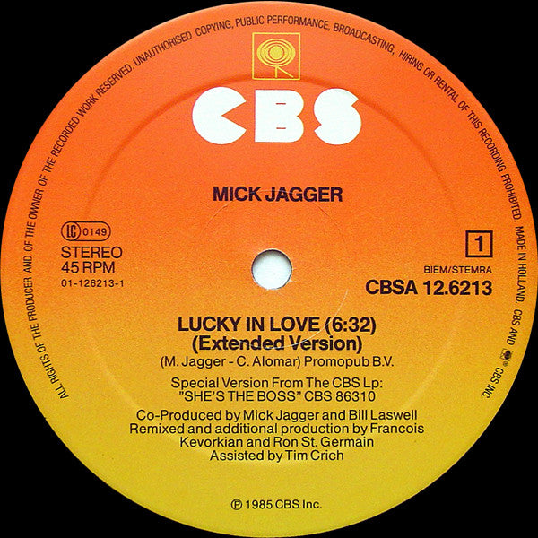 Mick Jagger - Lucky In Love (Extended Version) (12", Maxi) (Mint (M))
