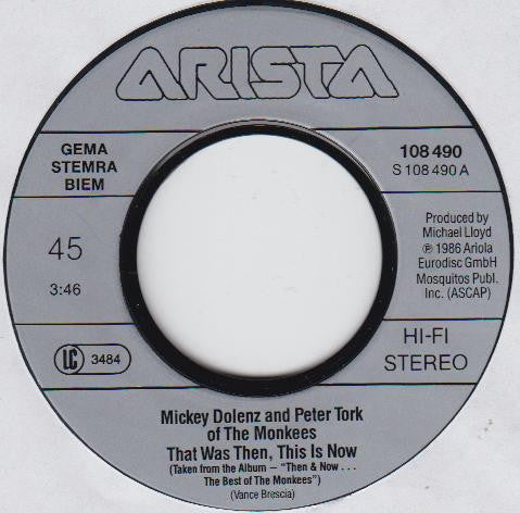 The Monkees - That Was Then, This Is Now (7", Single) (Very Good Plus (VG+))