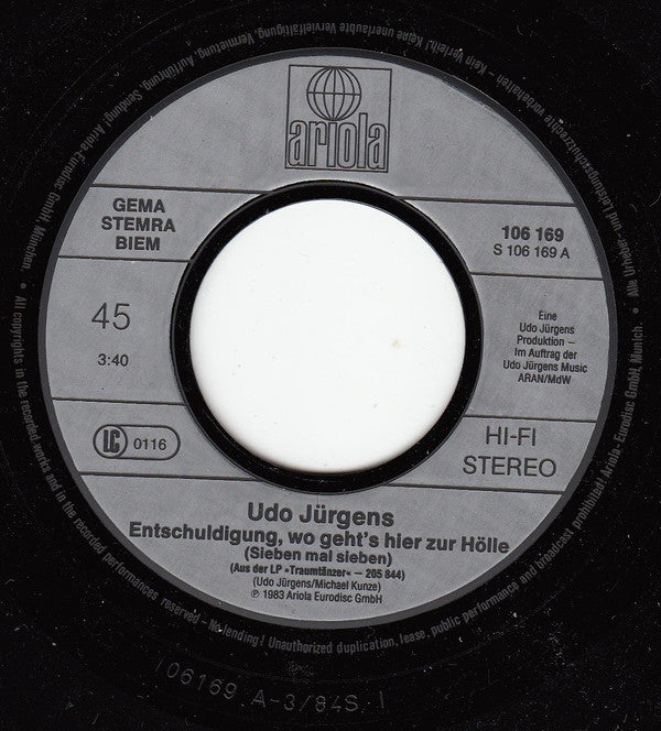 Udo Jürgens - Entschuldigung, Wo Geht's Hier Zur Hölle (7", Single) (Near Mint (NM or M-))