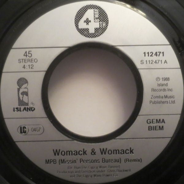 Womack & Womack - MPB (Missin' Persons Bureau) (7", Single) (Very Good Plus (VG+))
